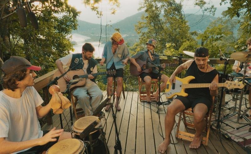 “Foi intenso, do jeito que a gente gosta. Tínhamos pouco tempo, não dava pra errar, mas foi tudo muito insano. Estar ali com pessoas especiais pra nós fez toda a diferença. Acordar com o barulho do mar, pegar o violão, gravar com os amigos, rir… Foi tudo muito real. A gente se jogou de cabeça e saiu de lá com algo que carrega muito da nossa essência”, eles refletem.